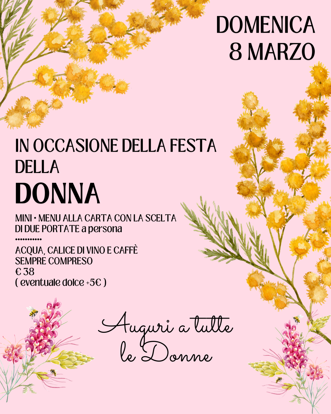 IN OCCASIONE DELLA FESTA DELLA DONNA, DOMENICA 8 MARZO A PRANZO , ABBIAMO PENSATO AD UN MINI-MENU ALLA CARTA PER CELEBRARE QUESTA GIOIOSA GIORNATA!